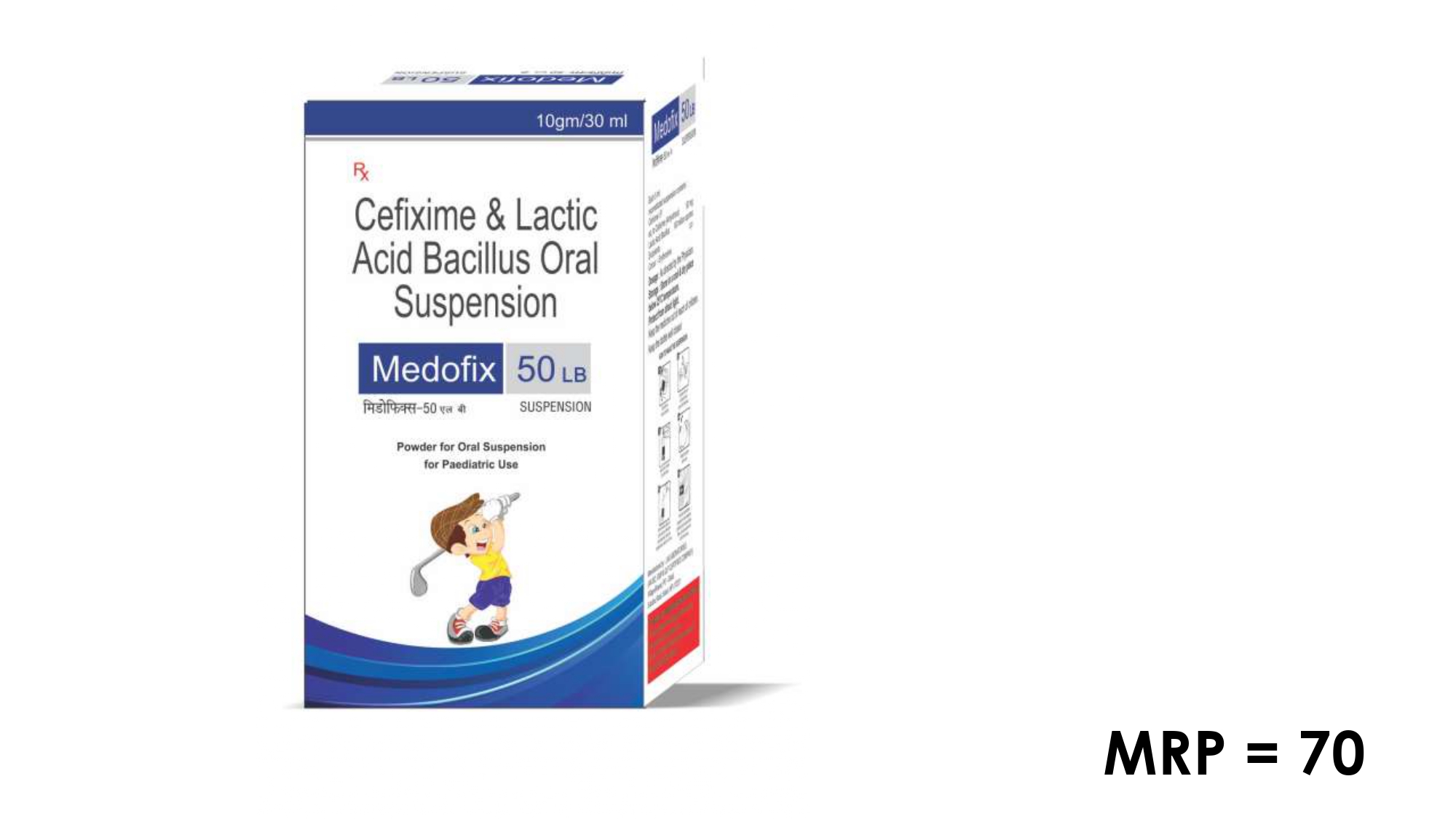 Cefixime 50 mg+ LB.Dry Syrup with cartoon pack