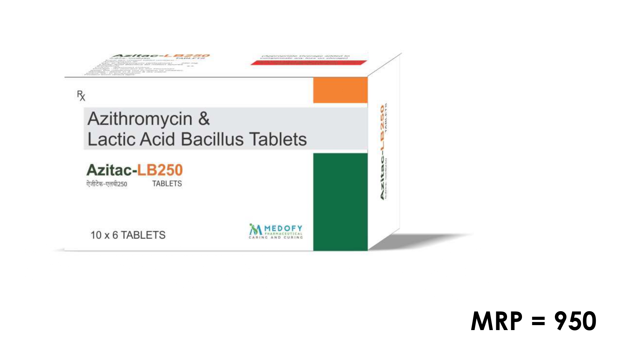 Azithromycin 250mg+Lactic Acid Bacillus 60 million spores Tablet