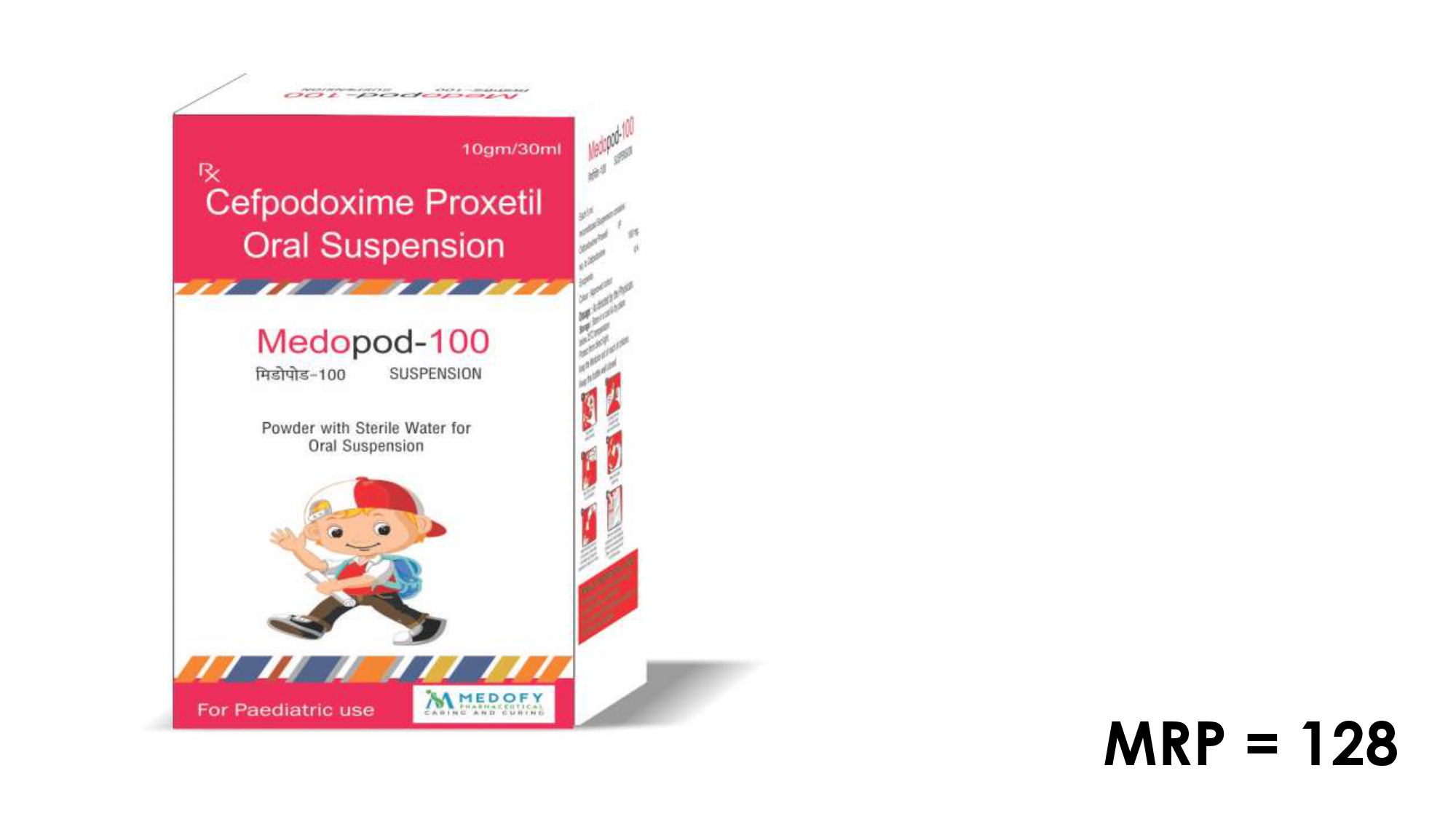 Cefpodoxime 100mg. Dry Syrup with cartoon pack+WFI